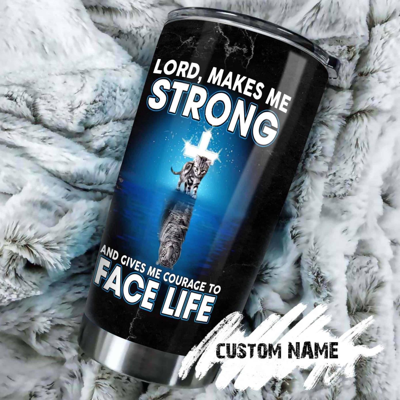 Cat Tiger Lord Make Me Strong Personalized Tumbler